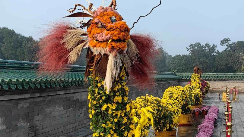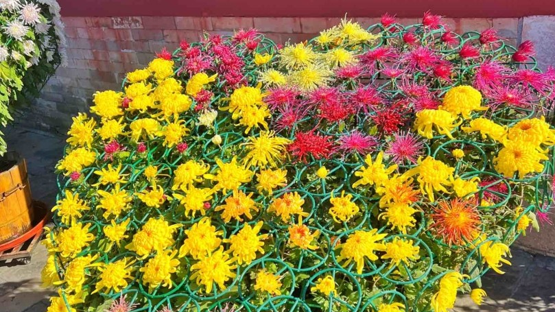 天坛养菊历史悠久,明清时期神乐观道士曾养菊供达官显贵观赏,后因禁令一度中断。现代养菊事业始于20世纪50年代初新中国百废待兴之际,60年代迎来杂交育种高峰,培育出“瑞雪祈年”等200多个新品种,技艺传承有序,历经李瑞甫、焦宝琮、赵立发、尹家鹏等师徒接力,如今,平均年龄37岁的7人菊花班团队,每年养护菊花万余盆、大丽花千余盆。他们在传承基础上不断创新:培育出开花超千朵的大立菊、创新嫁接造型、重拾大丽花技艺,并自主设计专利绑扎架获得专利。天坛菊展始于1959年,如今已成功举办四十四届,接待众多国际政要,使天坛菊花成为古都北京重要的文化名片和精湛园艺的代表。