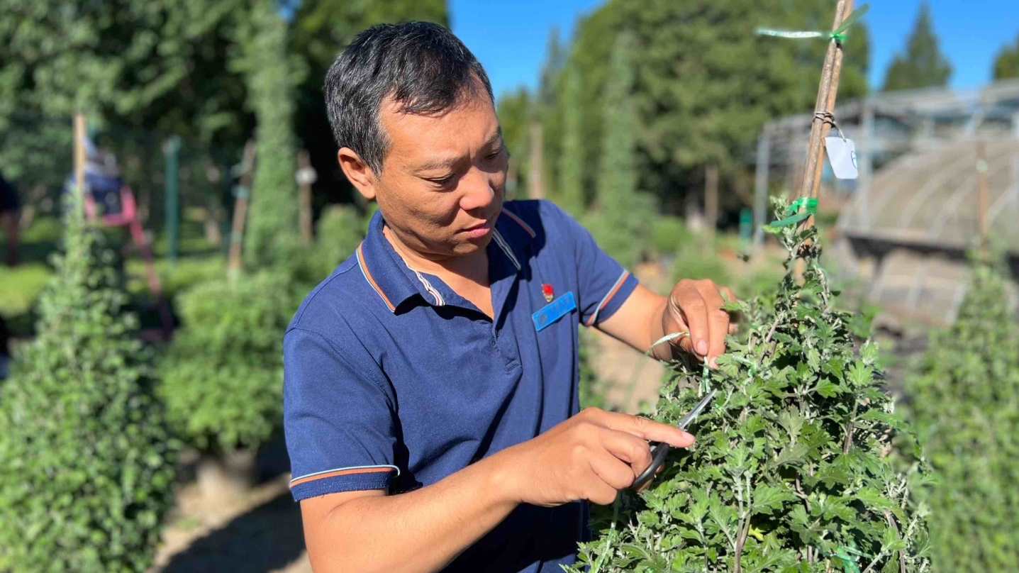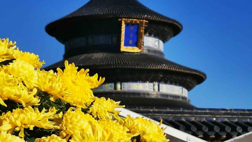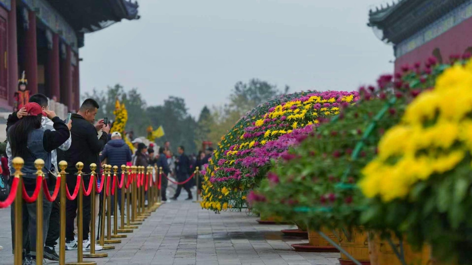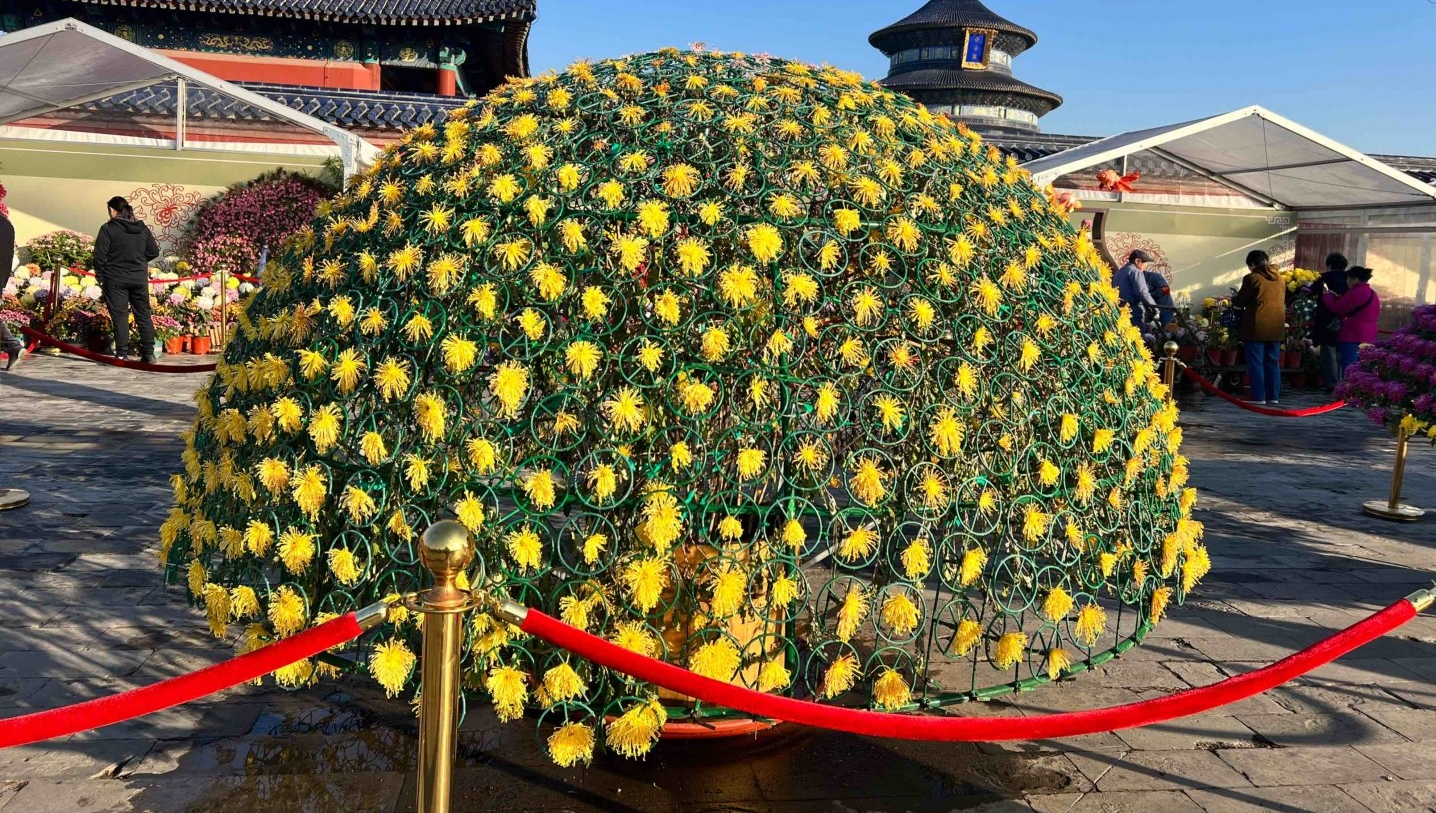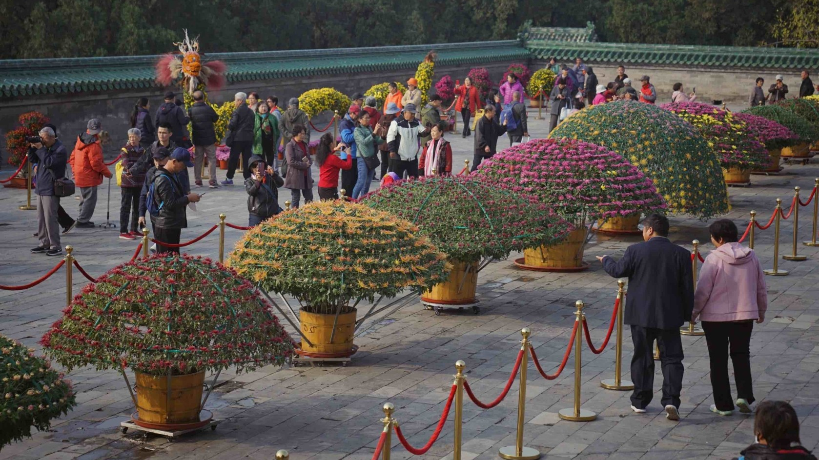 天坛养菊历史悠久,明清时期神乐观道士曾养菊供达官显贵观赏,后因禁令一度中断。现代养菊事业始于20世纪50年代初新中国百废待兴之际,60年代迎来杂交育种高峰,培育出“瑞雪祈年”等200多个新品种,技艺传承有序,历经李瑞甫、焦宝琮、赵立发、尹家鹏等师徒接力,如今,平均年龄37岁的7人菊花班团队,每年养护菊花万余盆、大丽花千余盆。他们在传承基础上不断创新:培育出开花超千朵的大立菊、创新嫁接造型、重拾大丽花技艺,并自主设计专利绑扎架获得专利。天坛菊展始于1959年,如今已成功举办四十四届,接待众多国际政要,使天坛菊花成为古都北京重要的文化名片和精湛园艺的代表。