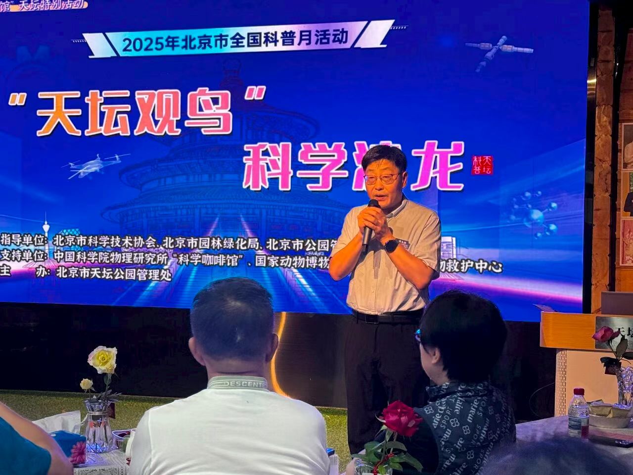 2025年9月13日,由北京市天坛公园管理处主办,在北京市科学技术协会、北京市园林绿化局、北京市公园管理中心指导下,并获得中国科学院物理所“科学咖啡馆”、国家动物博物馆、北京市野生动物救护中心等单位支持的“天坛观鸟”科学沙龙于天坛科普园举办。活动聚焦天坛公园,汇聚生态保护、科研教育、自然教育等领域的专家学者及社会公众,深入探讨城市中心区域生物多样性保护之道,共同提升对北京鸟类生态的认知与保护意识。