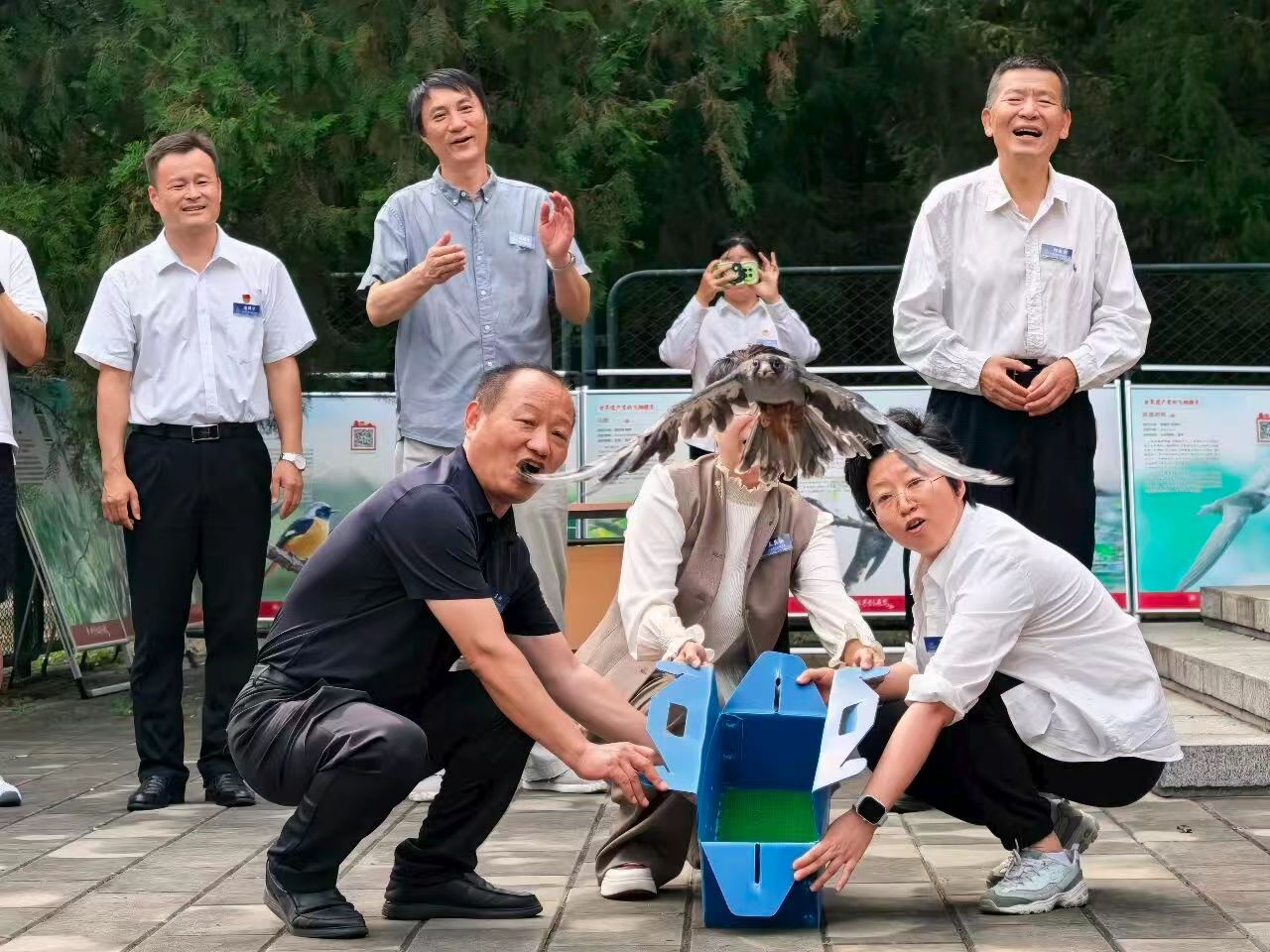 活动伊始,一场庄重而充满意义的野生鸟类放归仪式在科普园宿根植物区中心举行。在北京市野生动物救护中心的专业指导下,现场嘉宾共同见证了1只经过精心救护的红隼和1只红角隼重返蓝天。专家在现场详细讲解了城市野生鸟类的救护流程与科学放归理念,强调了维持城市生态平衡、守护鸟类家园的重要性。笼门开启,羽翼振飞,这回归自然的一幕,传递出人与自然和谐共生的美好愿景。