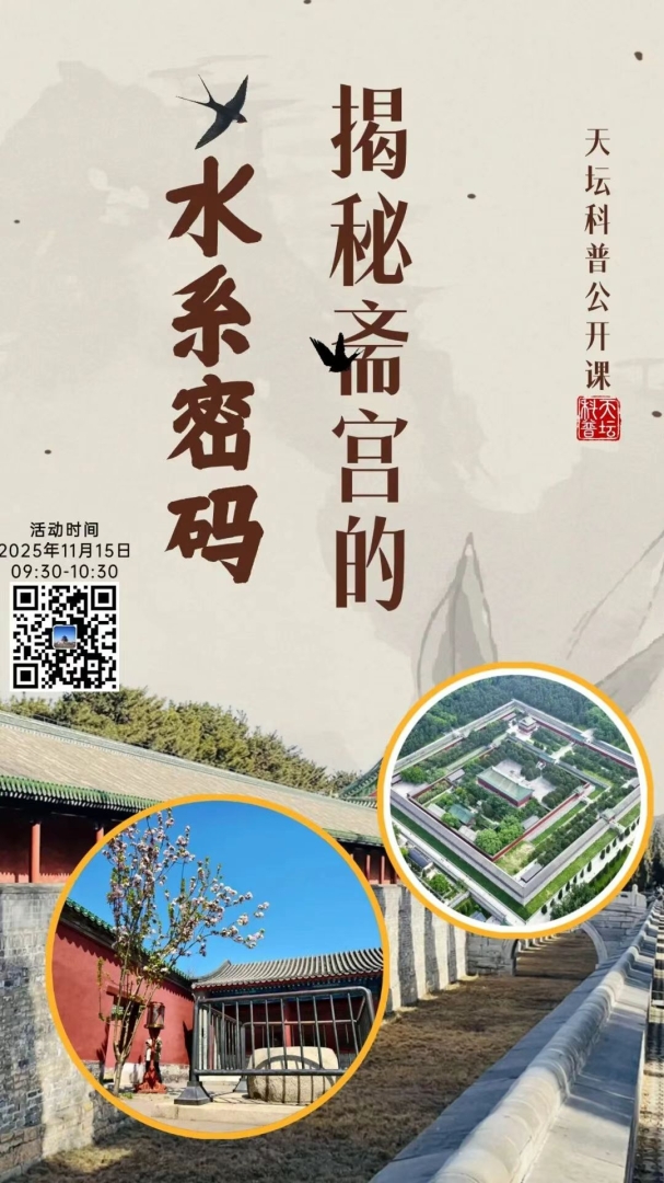 本次活动将围绕天坛斋宫,了解其建筑布局和地下水系,探秘天坛生态景观环境特征的同时,揭开这座皇家建筑群的科学与人文奥秘。